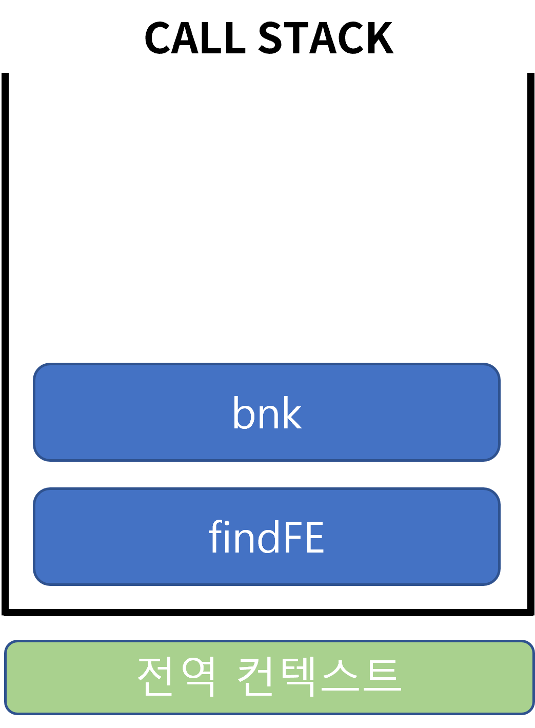 bnk : fnit : fn (2) bnk 함수를 실행시키면 함수 실행컨텍스트 내에 다시 bnk 함수의 실행 컨텍스트가 등록이 됩니다. 그 후 it 함수가 지역메모리에 등록이 됩니다.