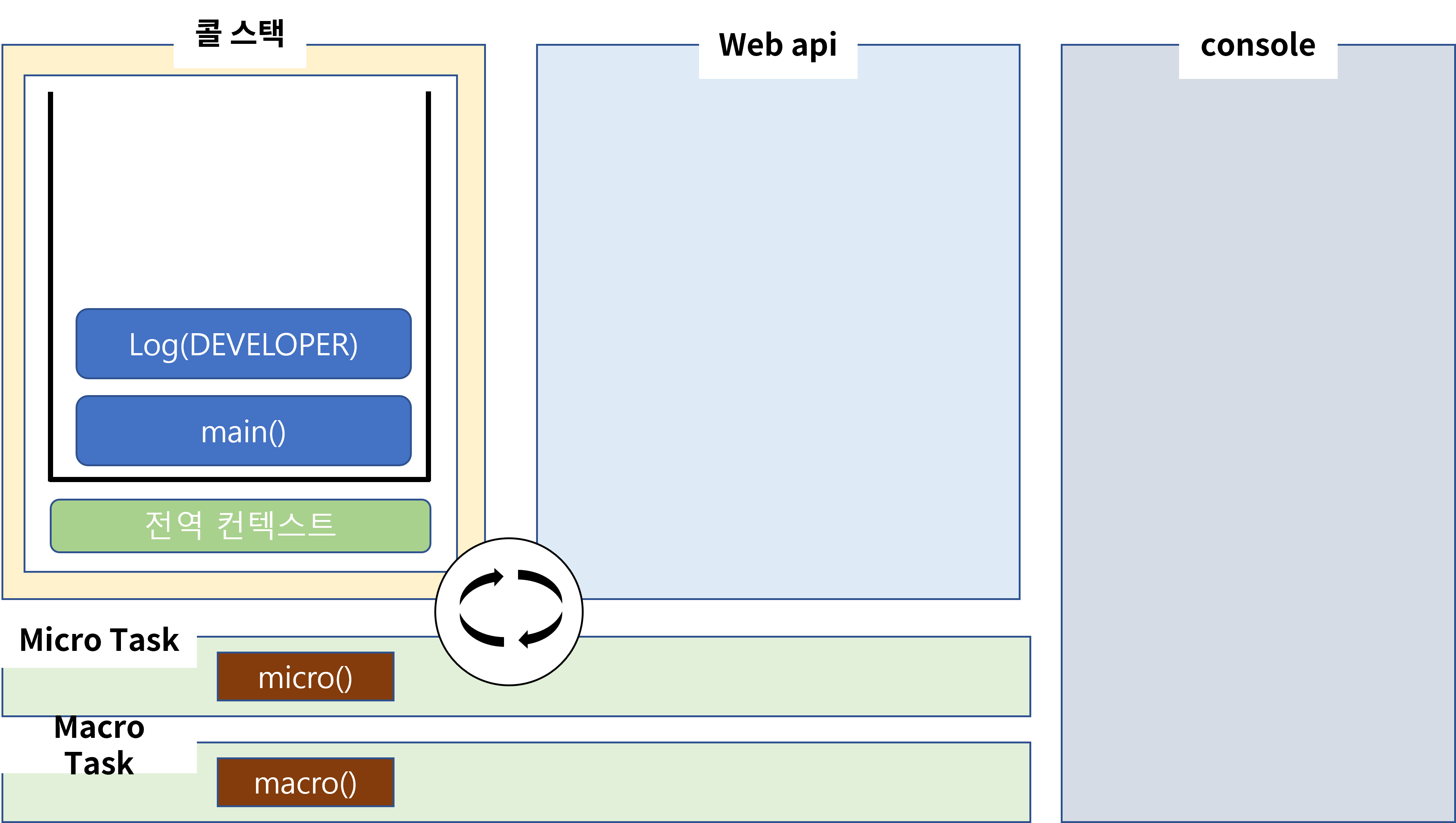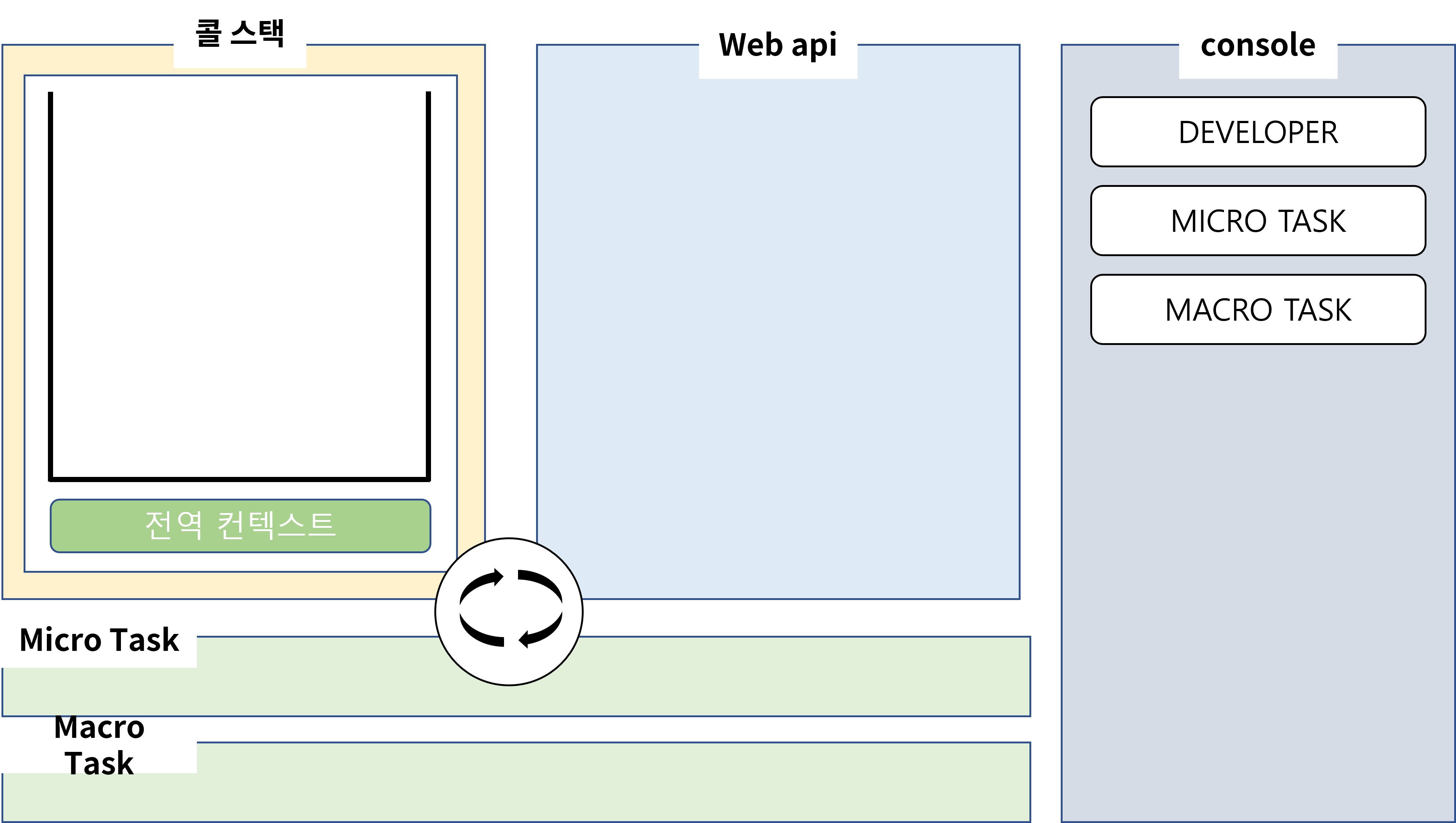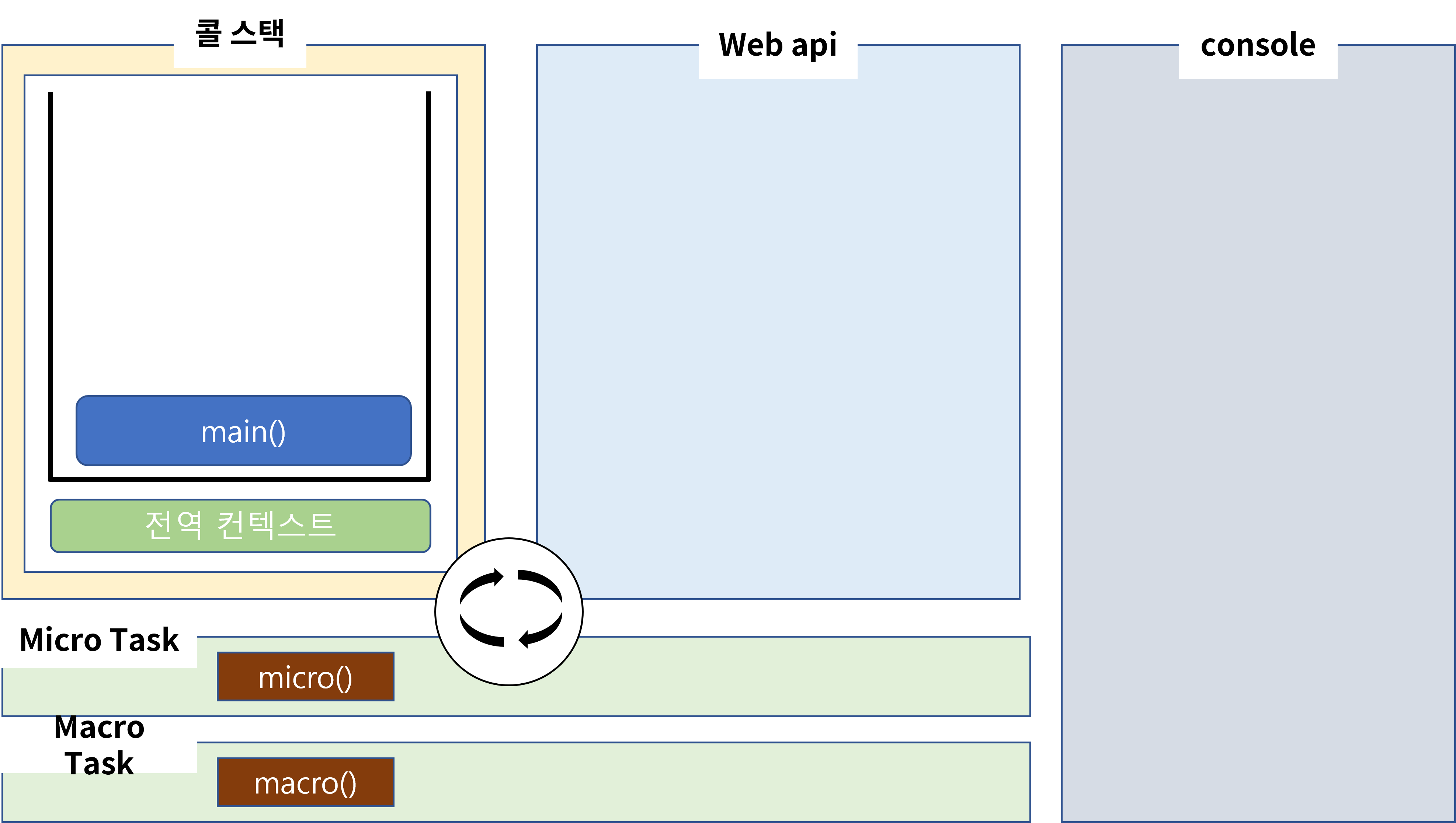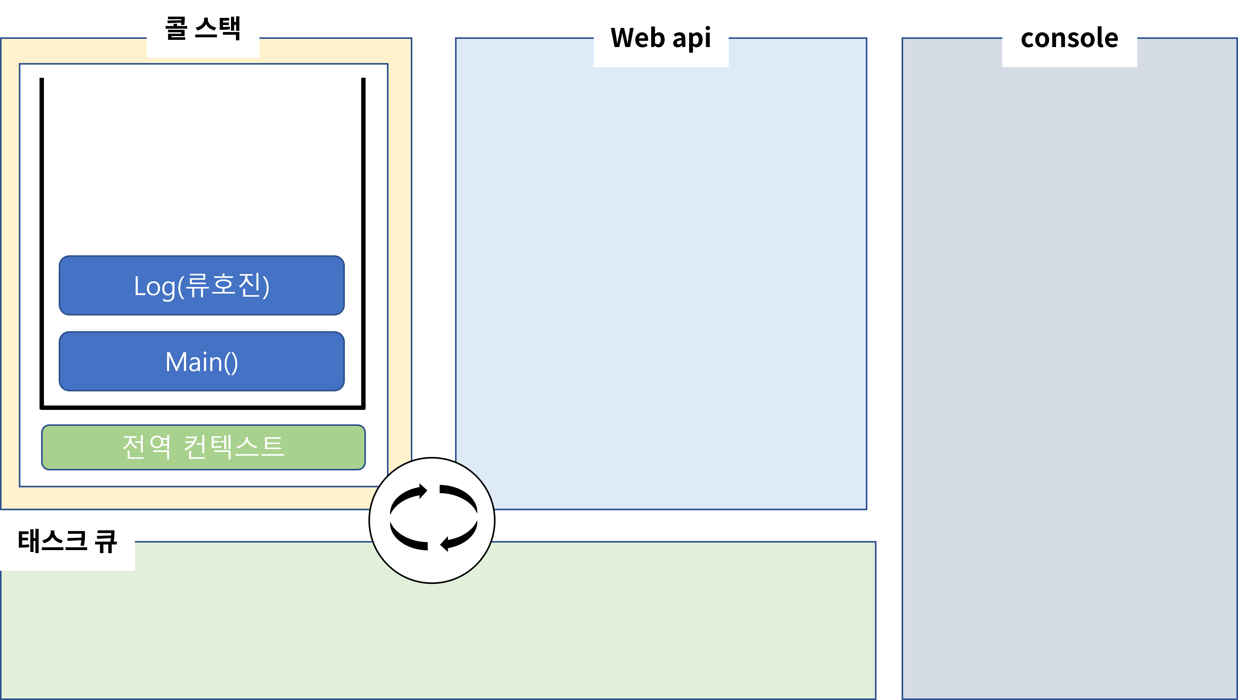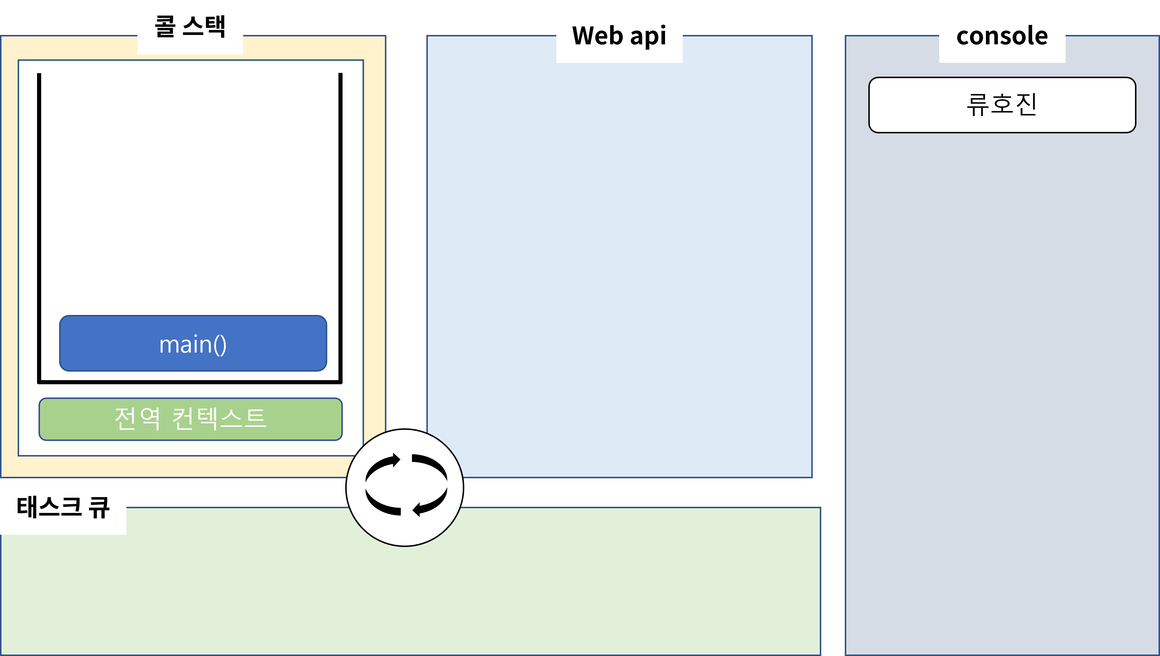 아래는 이해가 쉽게 그려놓은 이벤트 루프 일련의 과정입니다.