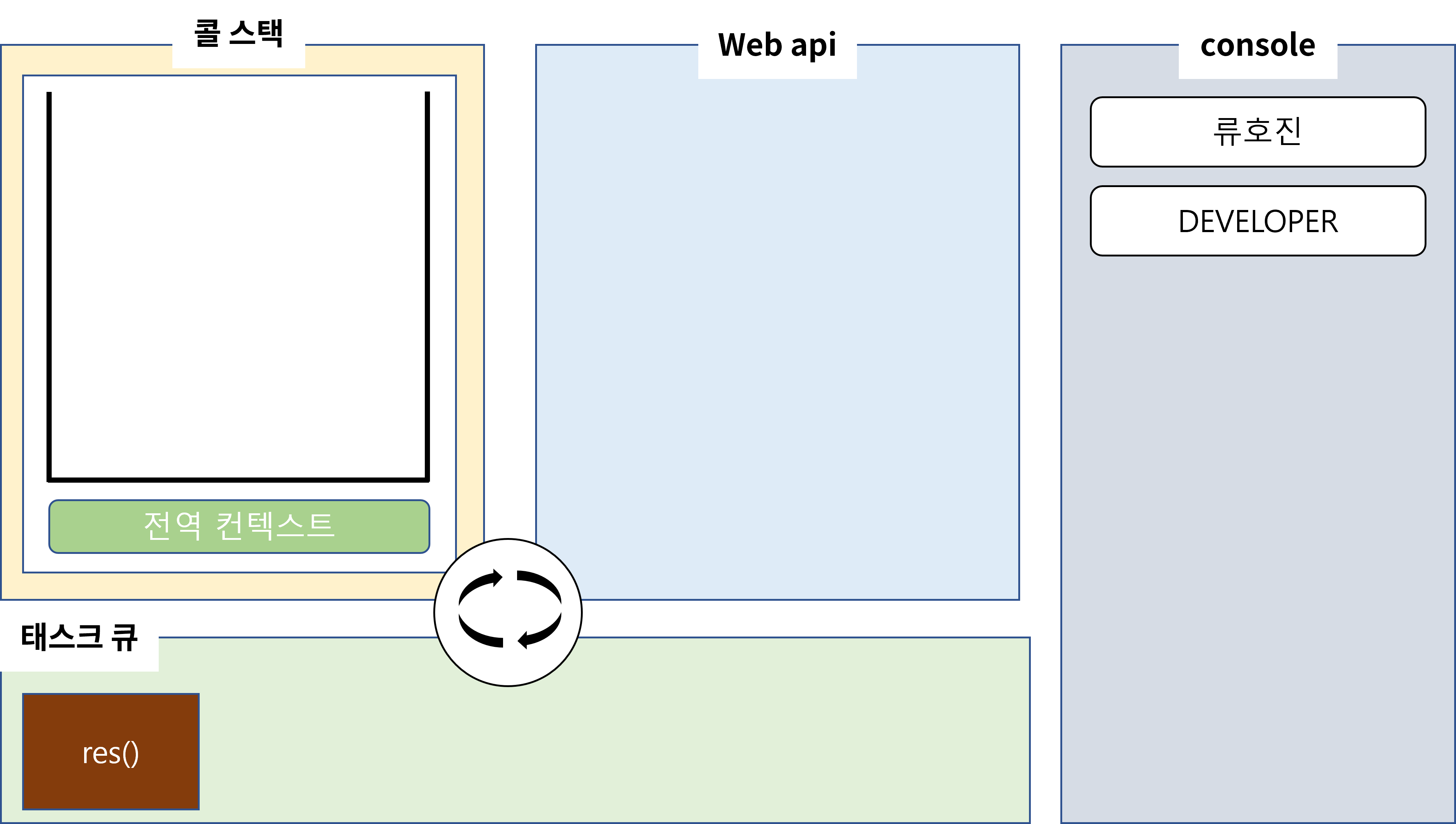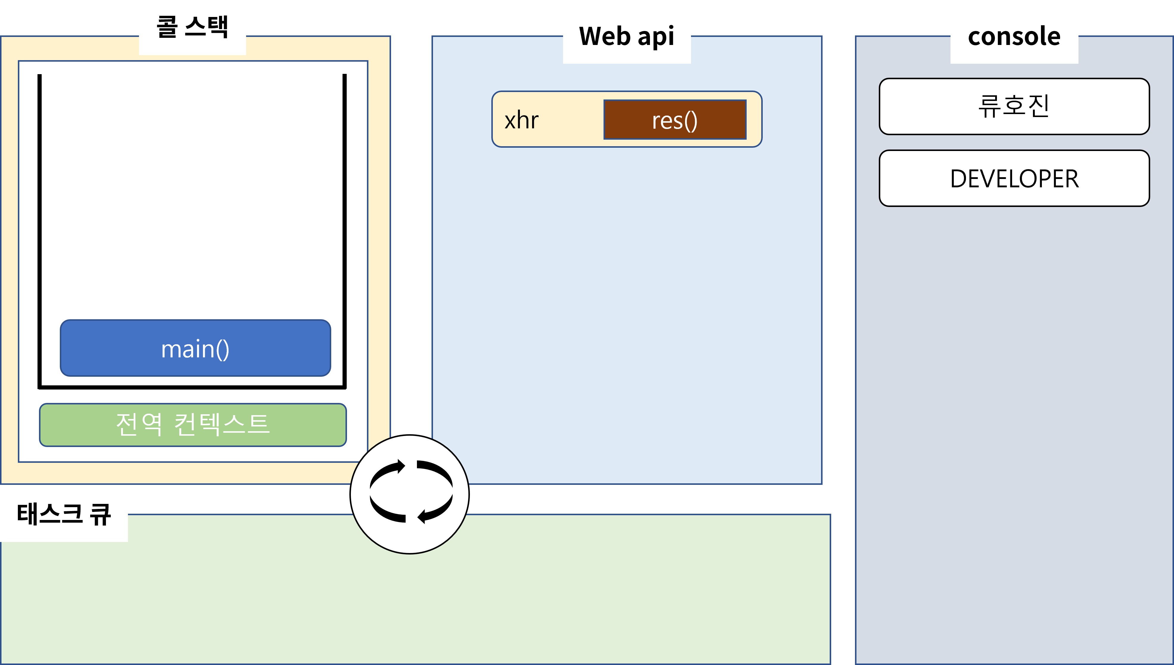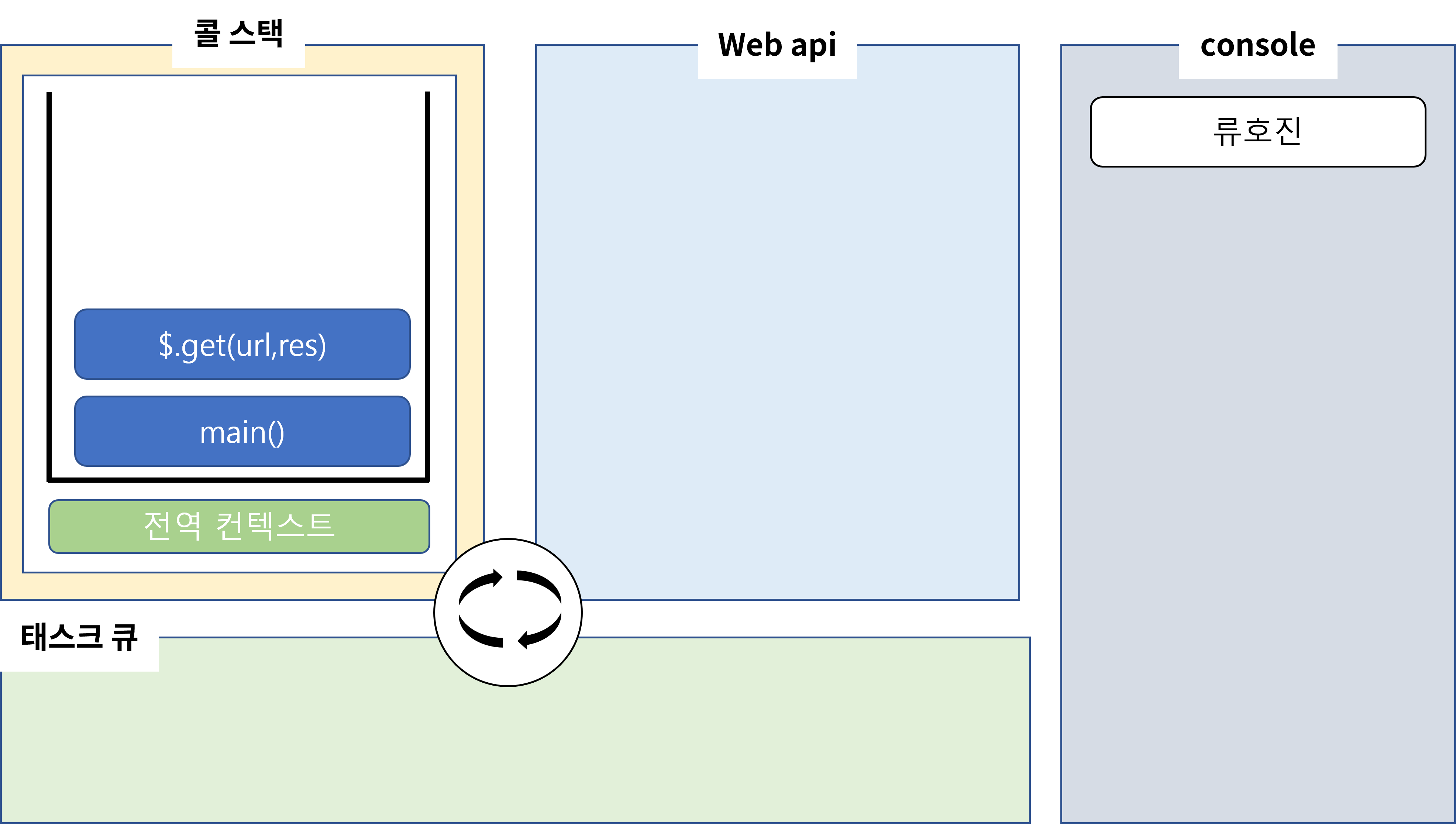 function main() { console.log("류호진"); // (1) $.get("url",function res(data){ console.log(data); }); console.log("DEVELOPER"); }